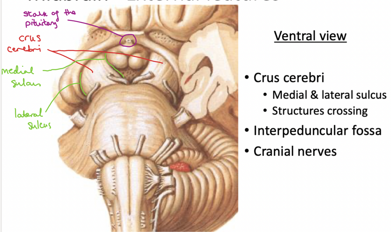 Label the ventral features of the midbrain