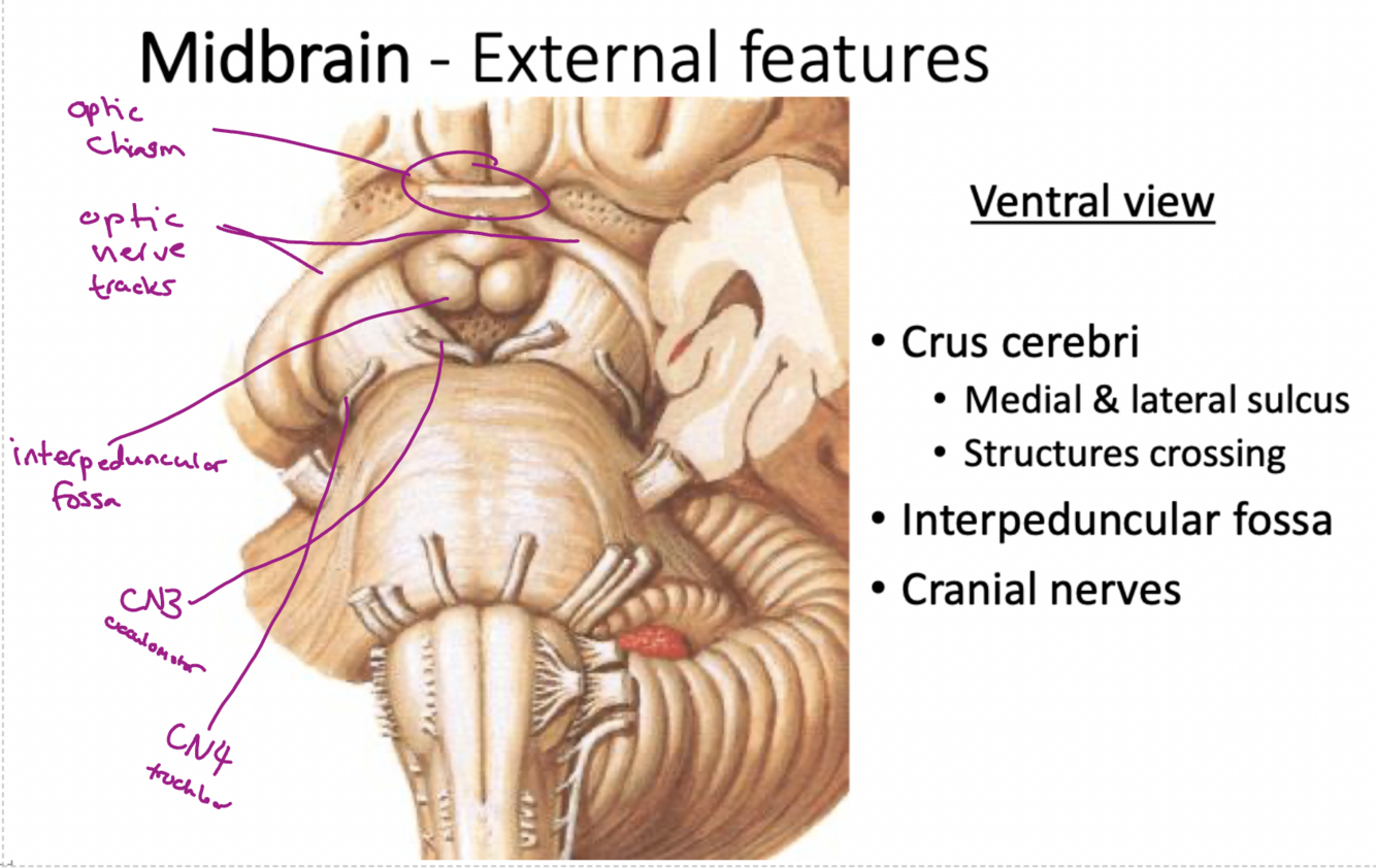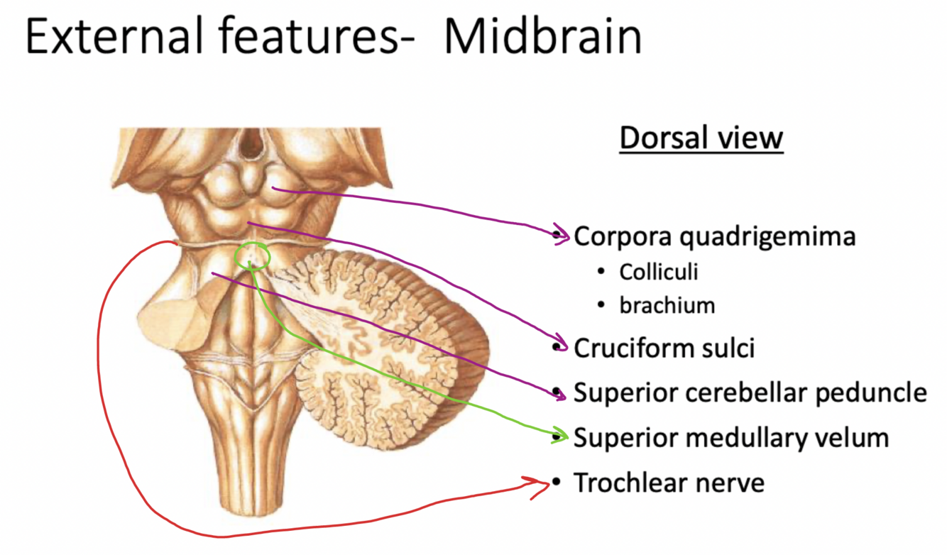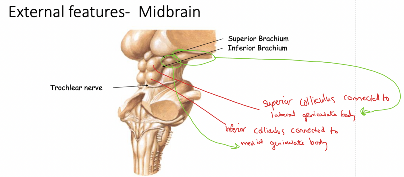 Label the external features of the midbrain