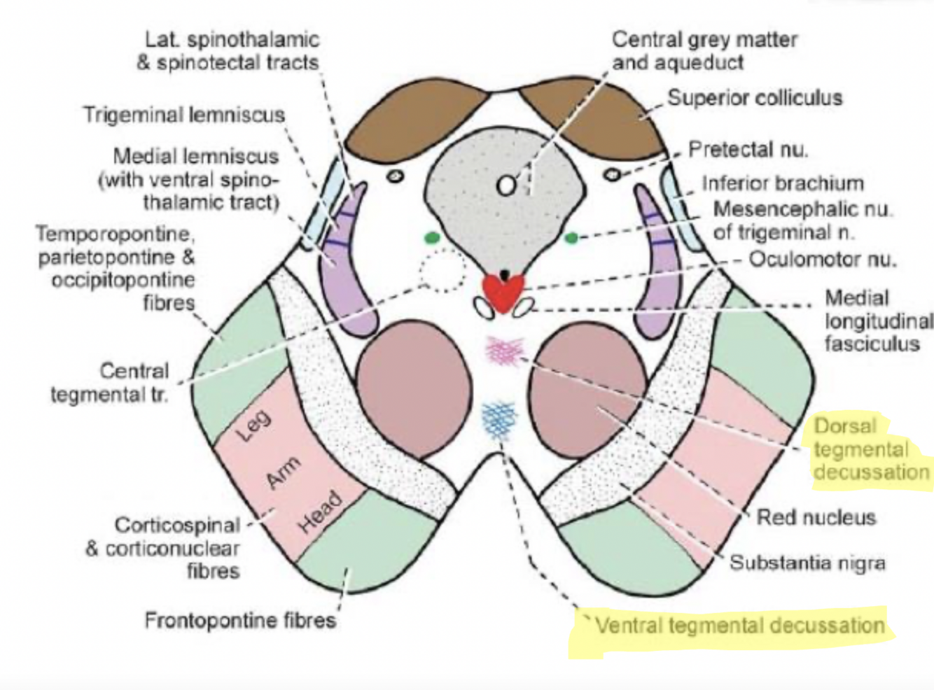 -Ventral tegmental decussation (rubrospinal/rubrobulbar/rubroreticular fibres)