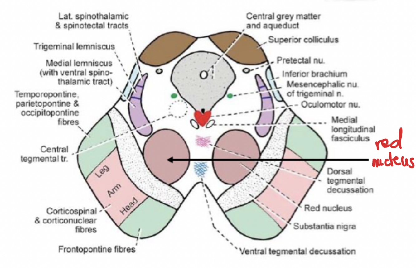 - Ipsilateral Corticorubral fibres