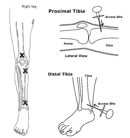 An effective route for fluid resuscitation and drug delivery directly into bone when patient is very unwell (especially in children)