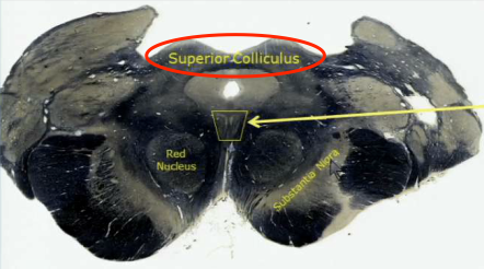 Superior colliculus, in the rostral posterior midbrain