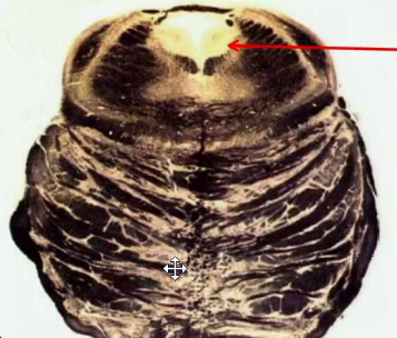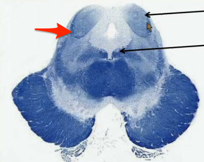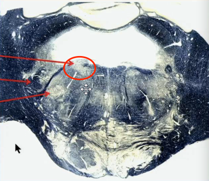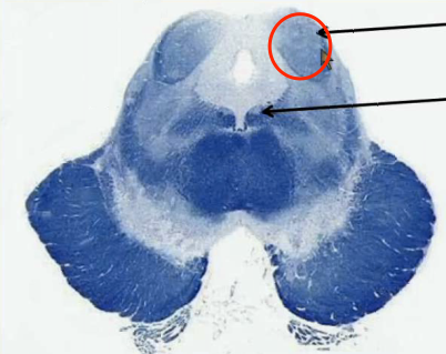 Follow the corticospinal tract from the frontal & parietal cortex down.