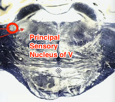 Principal sensory nucleus in the dorsal middle pons.