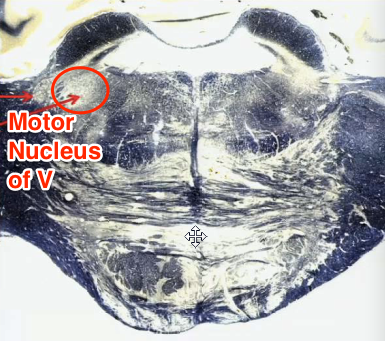 Motor nucleus of V in the dorsal middle pons.