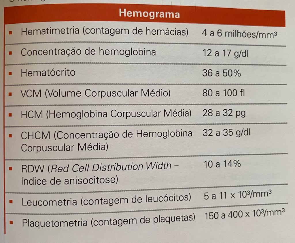 Quais os valores noramais de um hemograma completo?