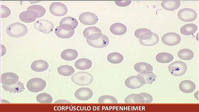 Sangue periférico: acúmulo de corpúsculos de Pappenheimer