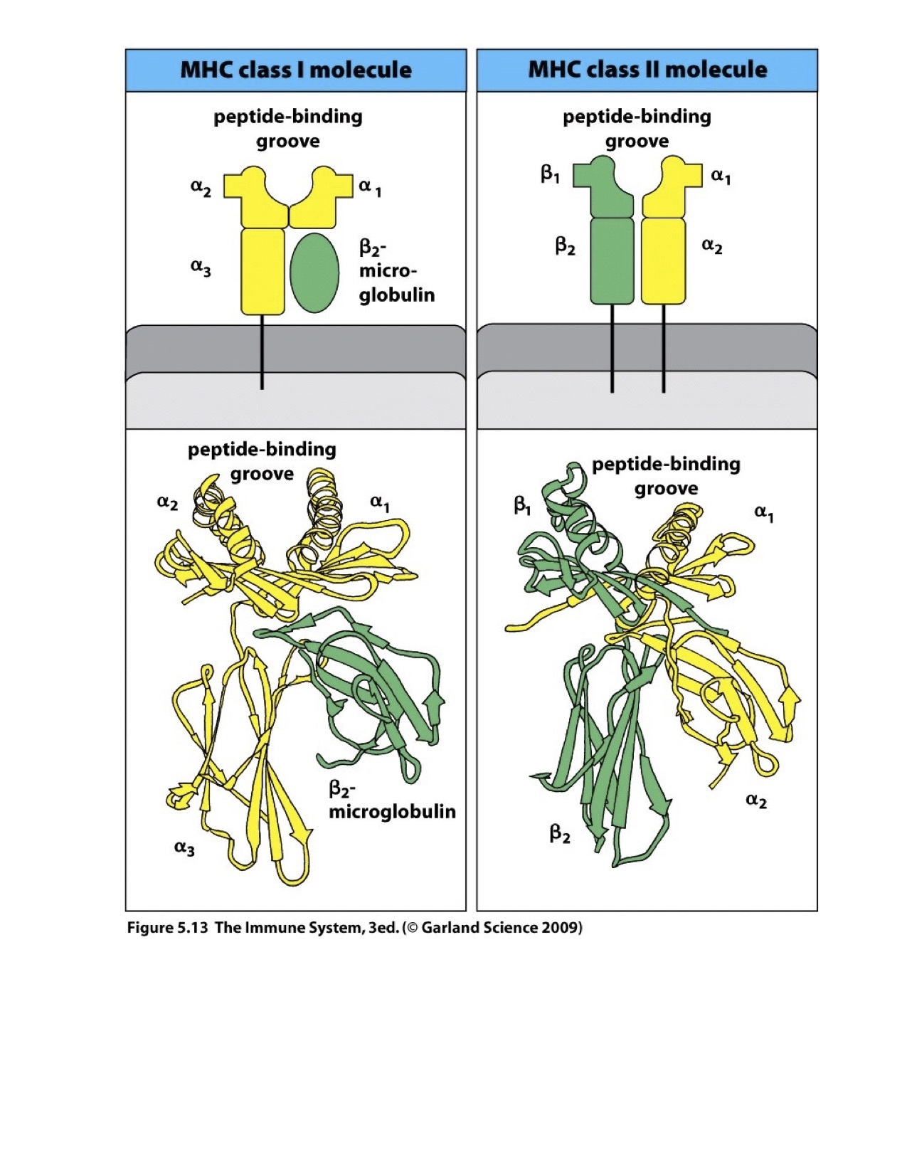 MHC 1- only alpha chains (1, 2, 3), beta 2 micro globulin
