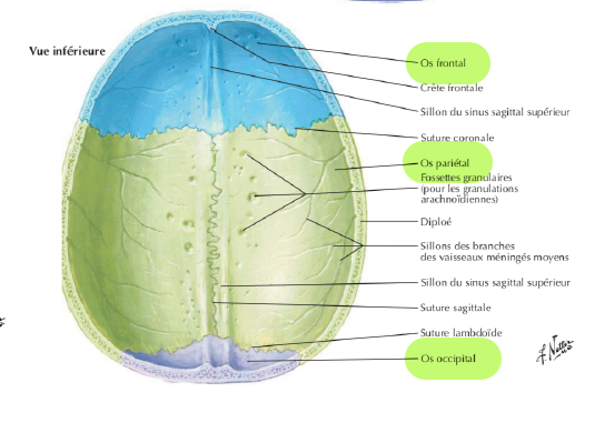 Quelles sont les fosses principales de la surface interne du crâne?