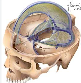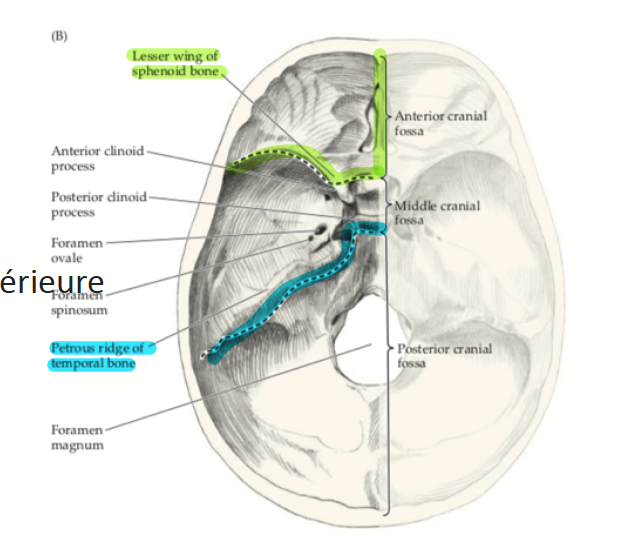 La partie PÉTREUSE de l’os temporal et la TENTE DU CERVELET divisent la fosse POSTÉRIEURE du reste de la voûte crânienne.