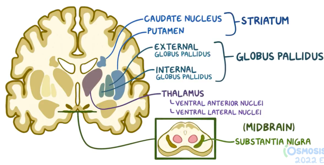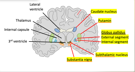 noyau caudé, putamen, GP
