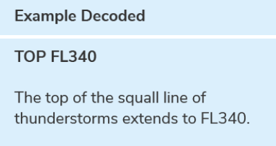 SIGMETs may contain only the top altitude of a phenomenon, such as a TS or CB, but may also contain a range of altitudes, such as FL180-240 or SFC-070