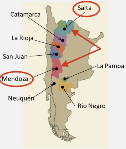 From north to south, which 3 regions in Argentina do you need to know for the CMS 2 exam?