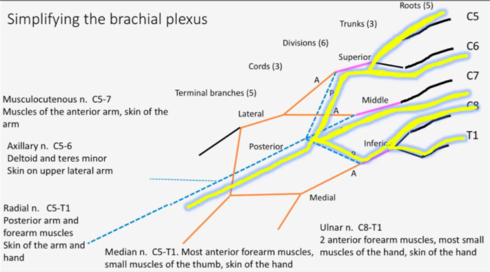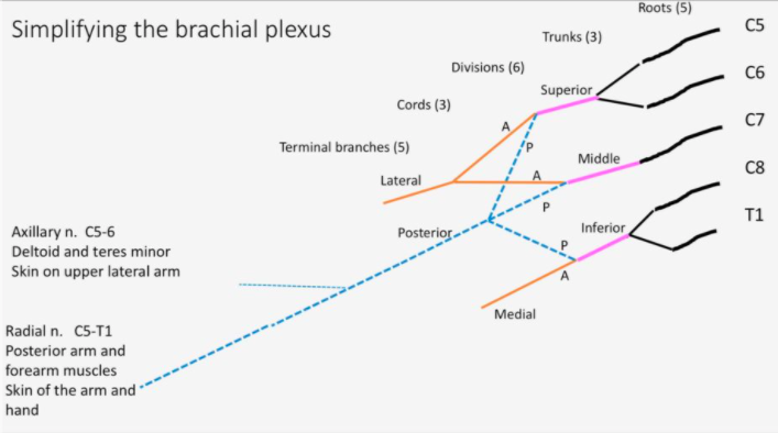 Posterior cord gives rise to 2 out of 5 terminal branches: