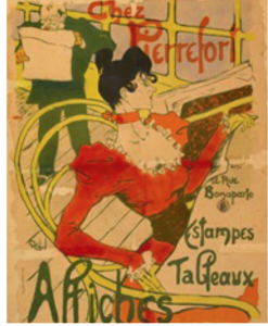There are works by Jules Chéret, father of the modern poster, who transformed the early, crude lithographs into a lively yet economical art form, full of action and vitality.