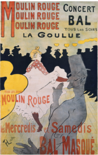 Toulouse-Lautrec, indelibly associated with Parisian nightlife, is represented with his well-known depictions of the Moulin Rouge, dancer Jane Avril and performer Aristide Bruant.