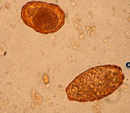 Após ingestão eclode o ovo(CO2 hospedeiro)