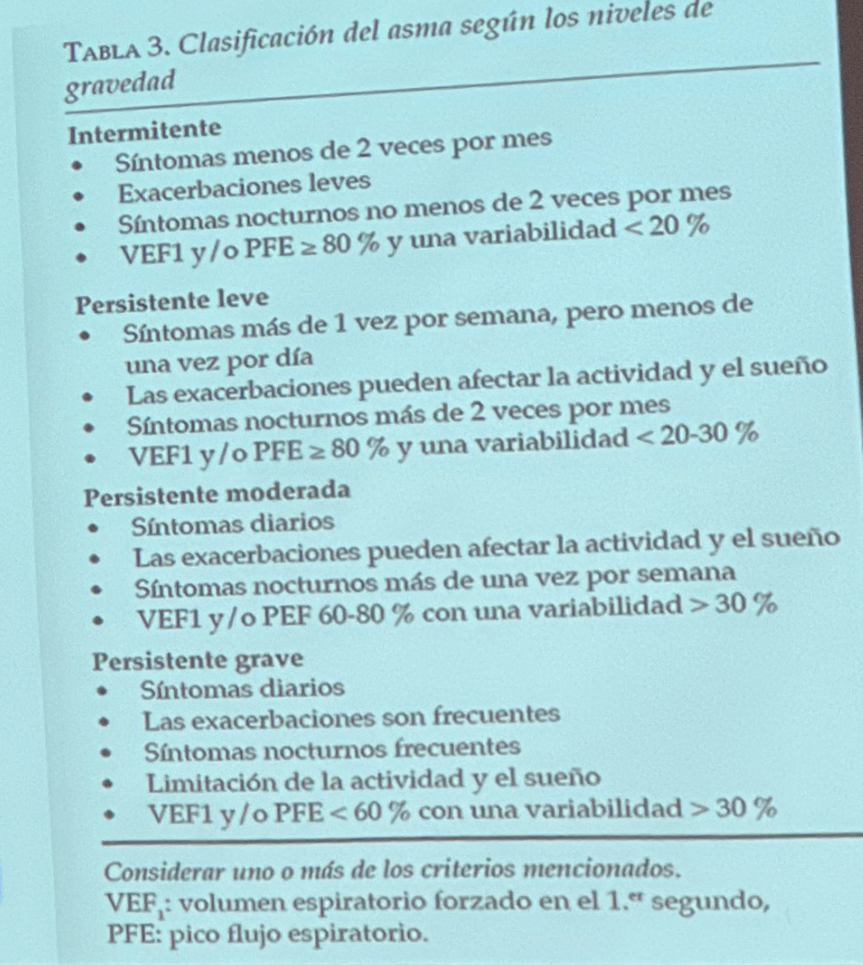clasificacion de asma segun los niveles de gravedad