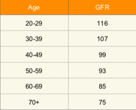 What happens to GFR with age?