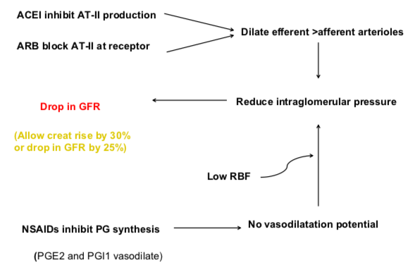What happens when ACE-I inhibit AT-II production, or ARBs block AT-II at the receptor?