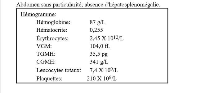 thalassémie–) possible , mais on se serait attendu à réticulocytose augmenté je pense