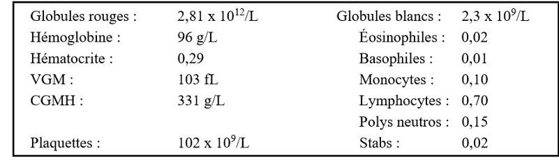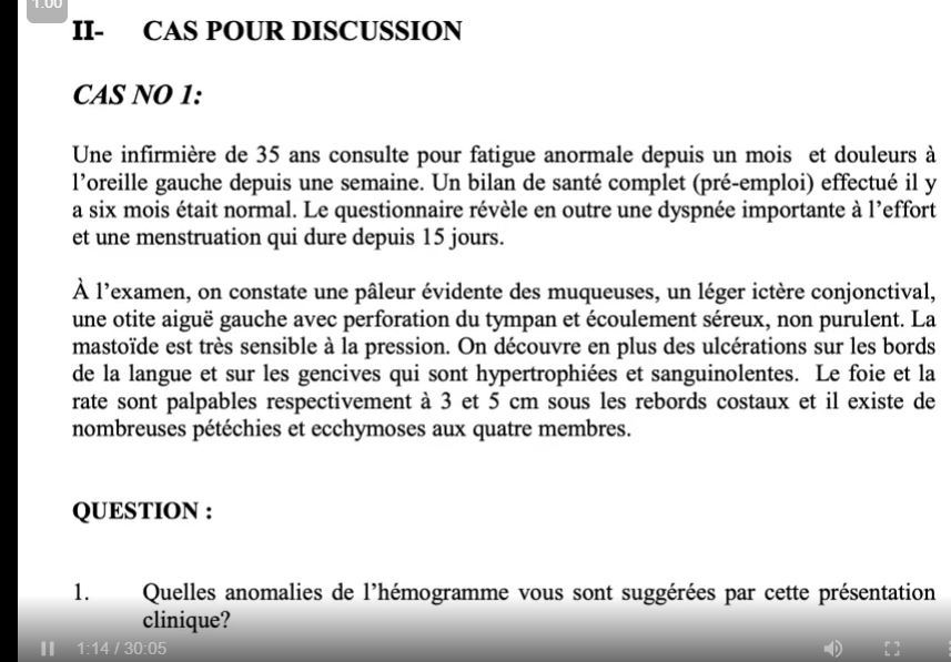 Paleur évidente muqueuse et fatigue –) surement très anémique