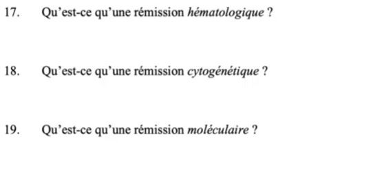 MOLÉCULAIRE : Disparition du réarragement BCR-ABL ( se trouve par PCR!!)