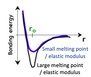 How does a materials property affect its bonding energy?