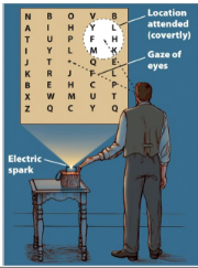 1879 - studied visual attention and observed tha thwile keeping his eye fizated in the center of a screen during a very brief illumination of the screen he could perceive the letters located within this region but had difficulty perceiving the latters at other locations.