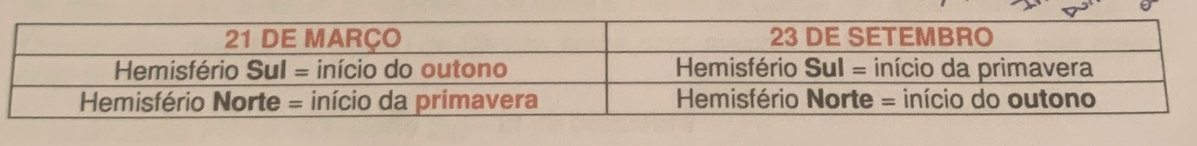 21 de março e 23 de setembro; data dos equinócios