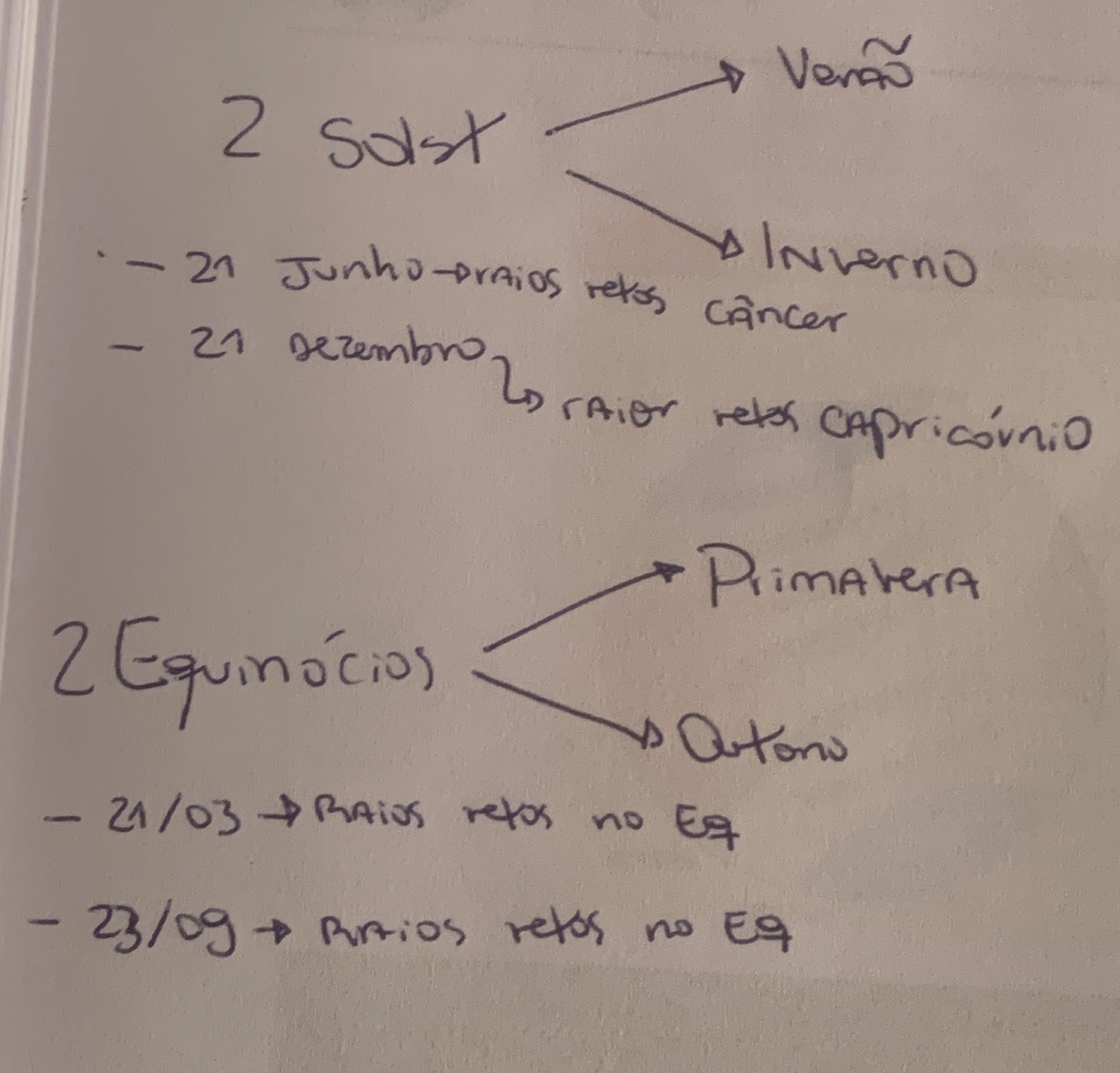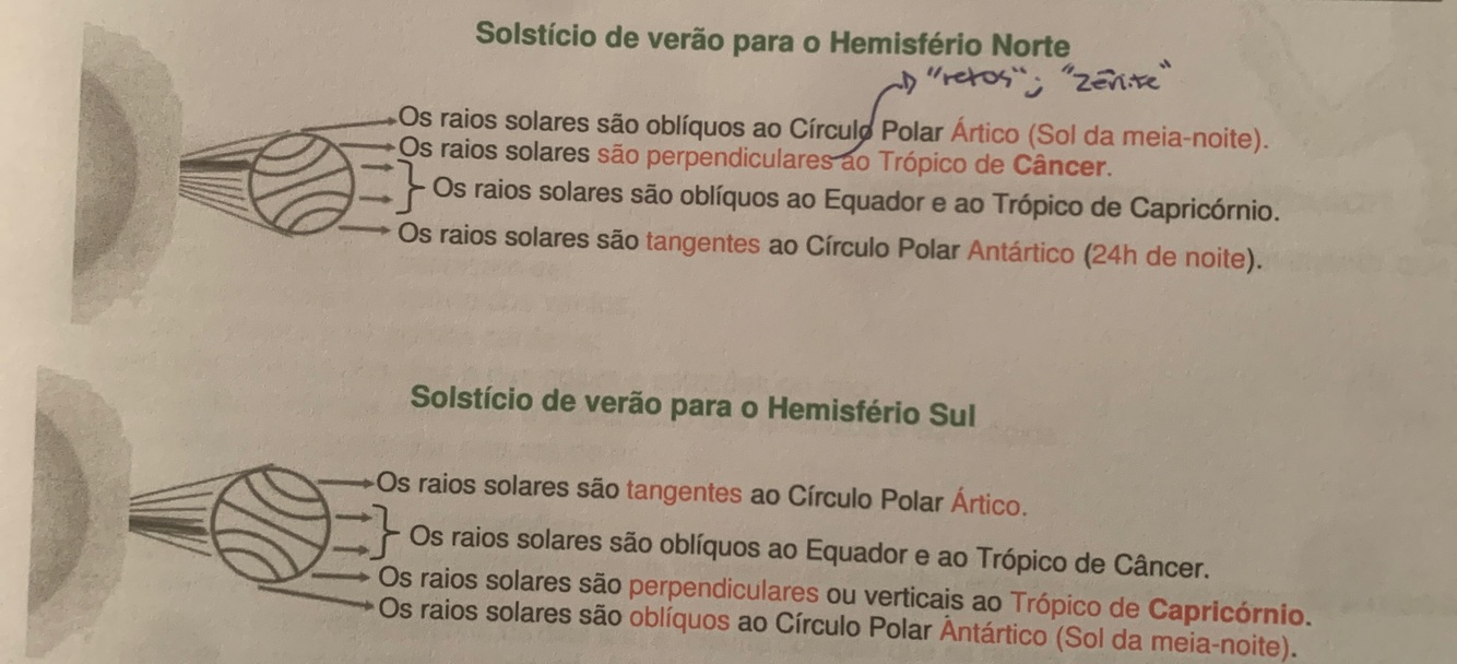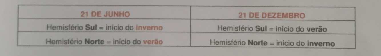 Esqueminha comparando solstícios e equinócios