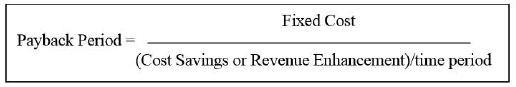 Payback Period = Fixed Cost / (Cost Savings or Revenue Enhancement) / time period so…… 30k / (3 x 20k)/year = .5 Years