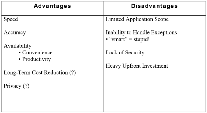 Type of function to be automated • automated input (Caller ID, Speech Recognition, Biometrics, webcam, …) • automated processing • automated output (Audio output, Robotics, …)