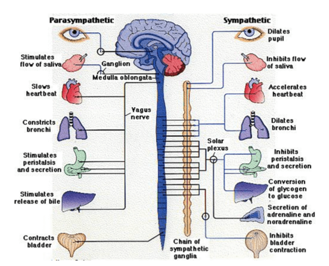 <p>What are some examples of things that the autonomic nervous system controls?</p>