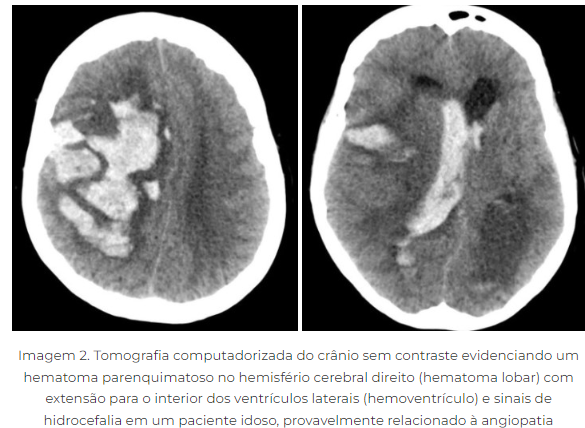 – hematoma intraparenquimatoso -> mais comum em arteriopatas associados a HAS;