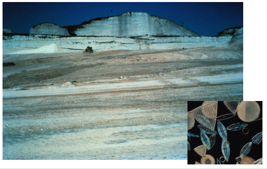 Diatomaceous earth (diatomite), a silica-containing sedimentary rock, is a collection of diatom frustules found in the earth’s crust.