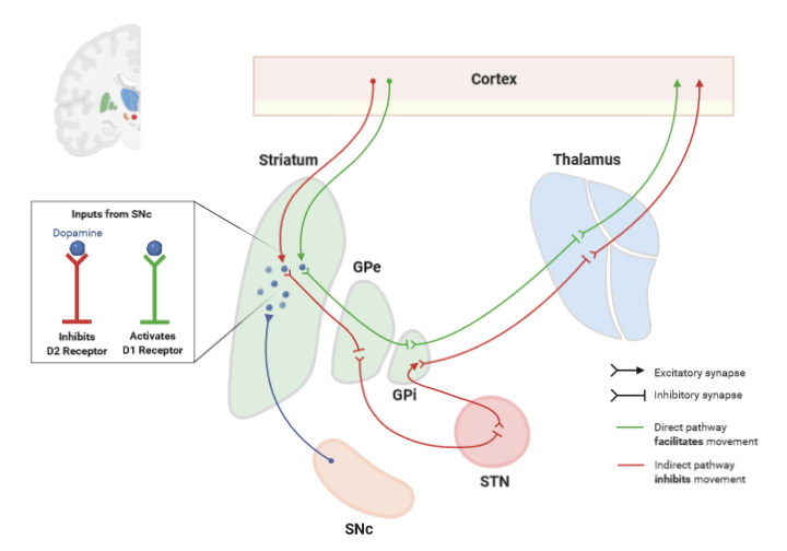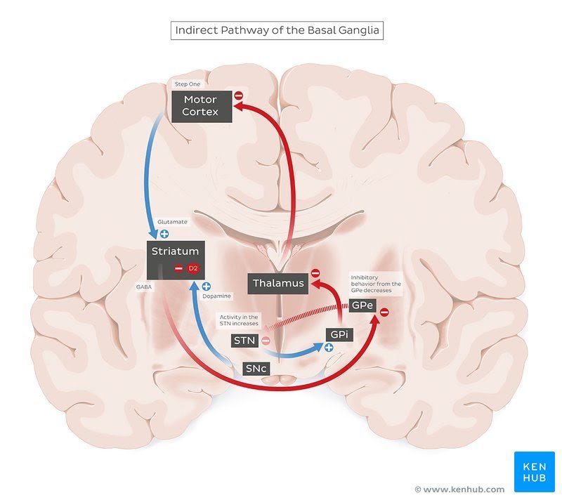 Indirect pathway of the basal ganglia (anatomically mapped)