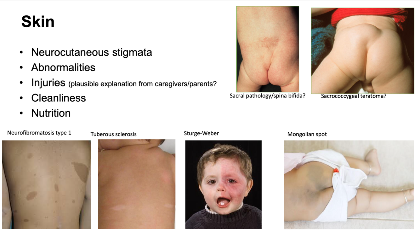 Hvorfor er det viktig å inspisere huden ved en nevrologisk us. av barn?