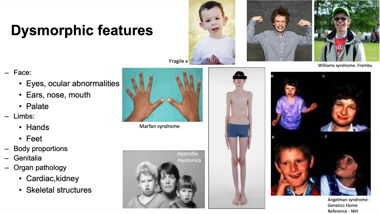 Hvilke dysmorfiske trekk er av interesse ved nevrologisk us. av barn?