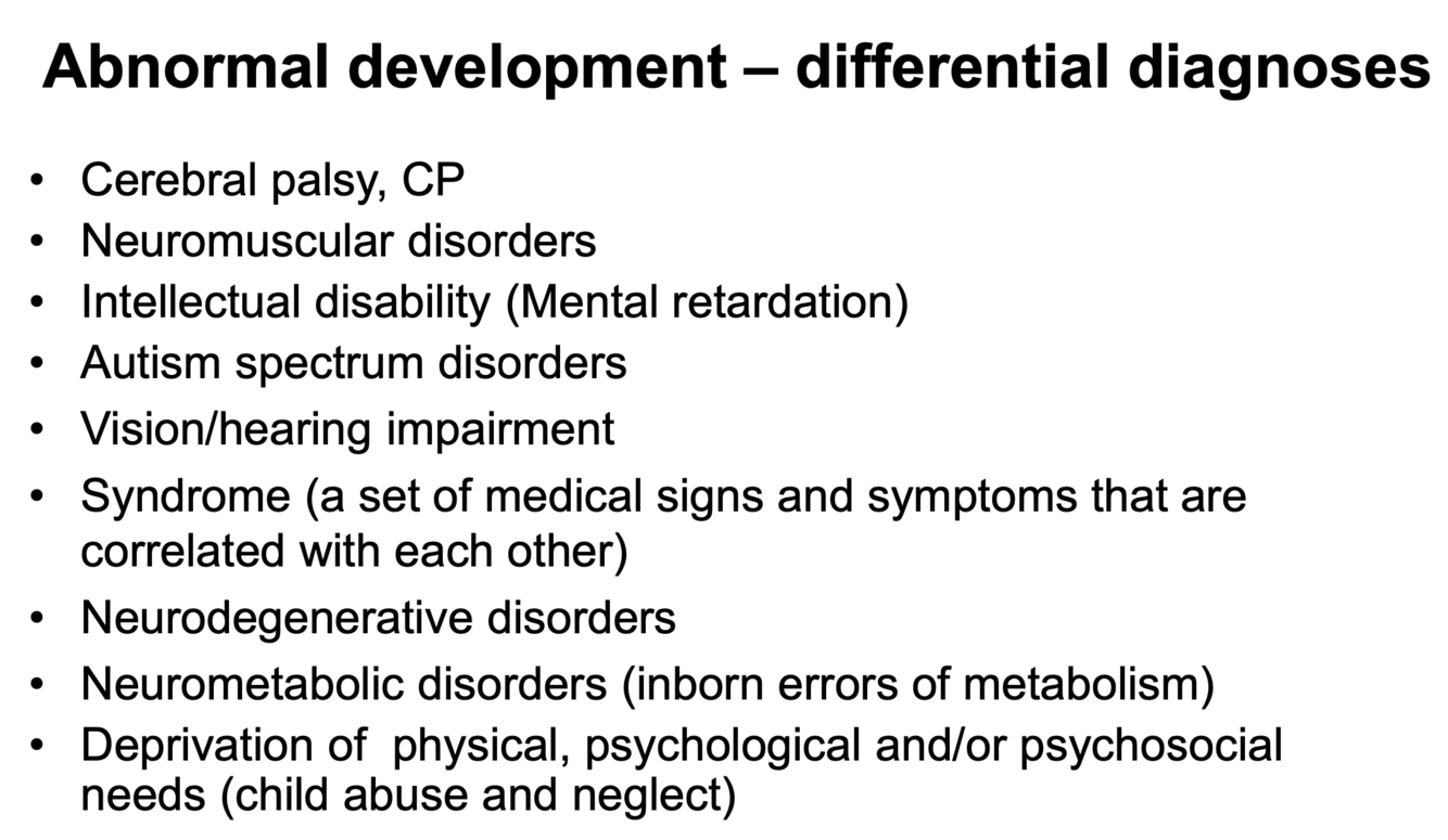 Hvilke diff.diagnoser har man til abnormal utvikling hos barn?
