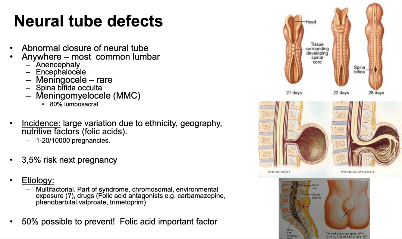 Hva kjennetegner nevralrørsdefekter?