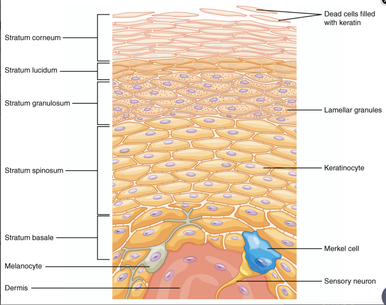 There are 3 main types of basal cell carcinomas (BCC), with Nodular being the most common type. Which of the following is NOT a characteristic of a nodular BCC?