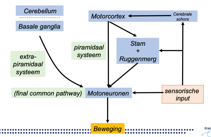 Motoneuronen sturen bewegingen aan. Via 3 routes kan je aansturing hebben.