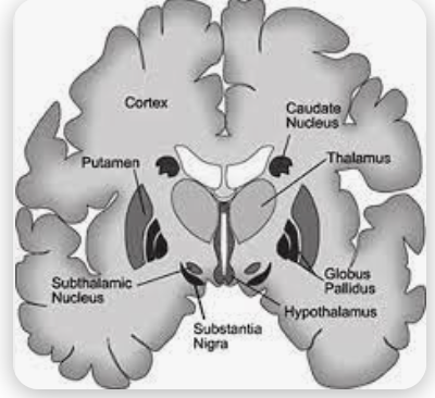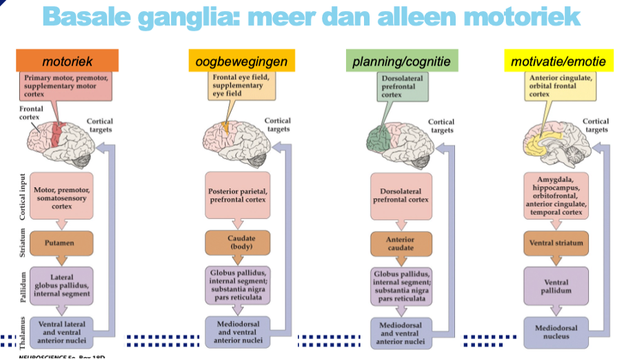 De substantia nigra zit hier dus tussen en zorgt voor de controle van beweging