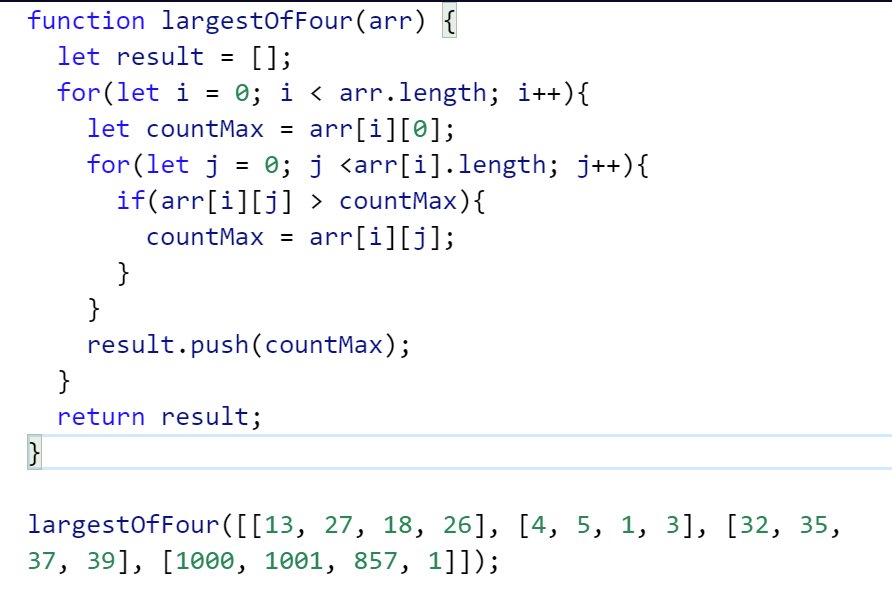 Return an array consisting of the largest number from each provided sub-array. For simplicity, the provided array will contain exactly 4 sub-arrays.