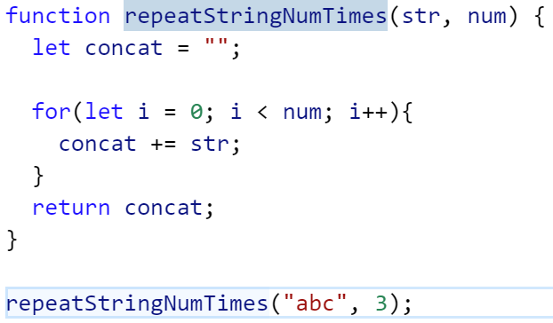 Repeat a given string str (first argument) for num times (second argument). Return an empty string if num is not a positive number. For the purpose of this challenge, do not use the built-in .repeat() method.
