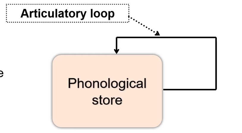 The working memory (short term memory) model (Baddeley & Hitch, 1974), which essentially is a model that shows how we are able to use working memory. It is important for reasoning, learning and comprehension. What is the phonological loop, which is part of the working memory mode?