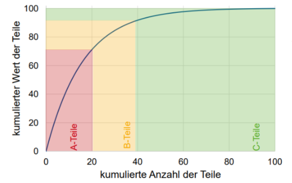 C-Teile: große Teileanzahl (50-80%) mit geringem Wert (ca. 2-10%)