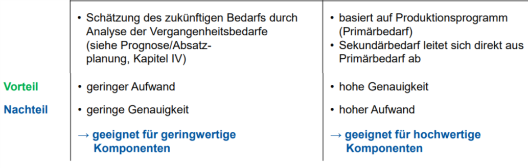 Welche zwei Methoden der Ermittlung des Sekundärbedarfs gibt es? Was zeichnet sie aus? Vorteile und Nachteile?