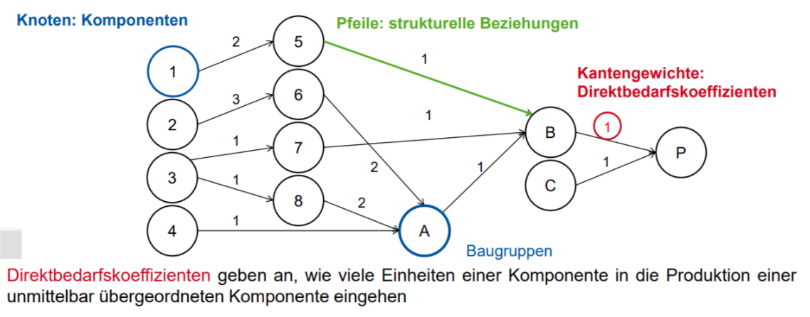 2. Sekundärbedarf kann aus Primärbedarf mit Hilfe der Erzeugnisstruktur (z.B. Gozintograf) abgeleitet werden